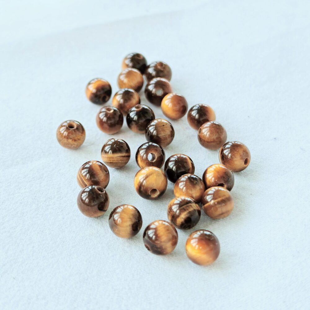 Små runda pärlor i Tigeröga med hål i – perfekta för tillverkning av egna smycken.
