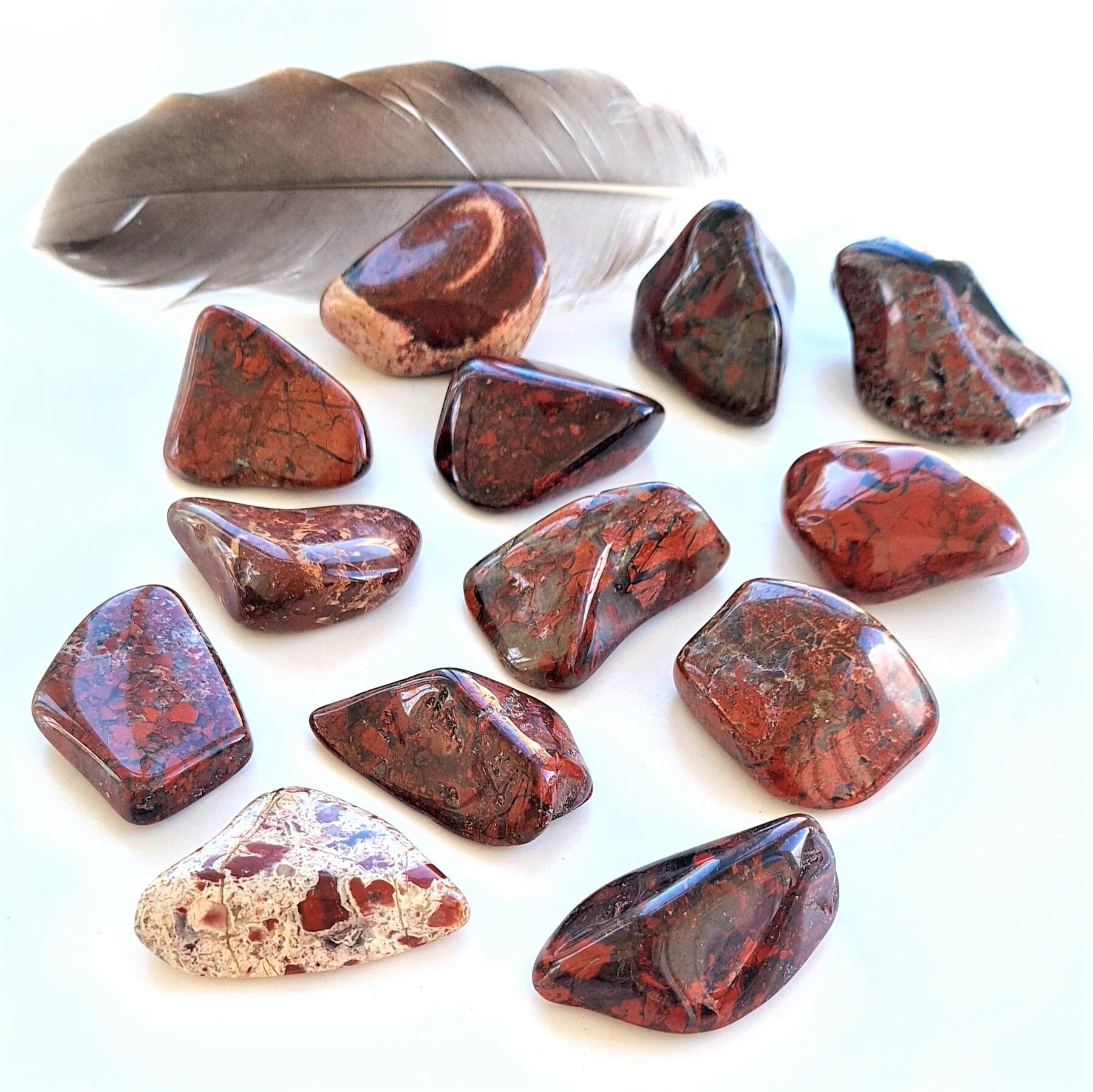 Breccijaspis påminner dig om att ha båda fötterna på jorden och känna in din kropp, för när du är närvarande i nuet kan du intuitivt se din del av sammanhanget och få en känsla av hur allt hänger ihop. Den hjälper dig att förena tanke med handling. Jaspis har under lång tid använts som en skyddande talisman i många olika kulturer. Den sägs hjälpa dig med din hälsa och med att få kontakt med dina tidigare liv. Den är grundande och skapar förbindelse mellan dina chakrapunkter. Breccijaspis förenar dina tankar med dina handlingar och sägs stödja dig när det är dags att gå vidare.