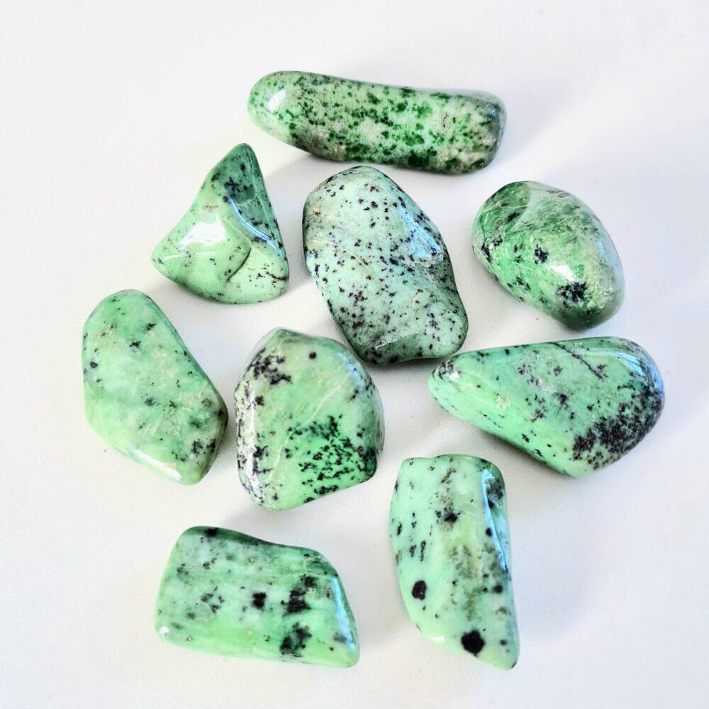 Grosularit är en kraftfull och jordnära granat som förknippas med balans, överflöd och djup kontakt med naturens energi. Den resonerar med bandet mellan människa och Moder Jord och sägs stärka vårdande, stabiliserande och livsbejakande energier. Grosularit uppmuntrar självmedvetenhet, personlig utveckling och modet att släppa de begränsningar som hindrar dig från att nå din fulla potential. Detta är en bra balanssten som uppmuntrar harmoni och hjälper dig att ta en starkare väg genom dina processer.